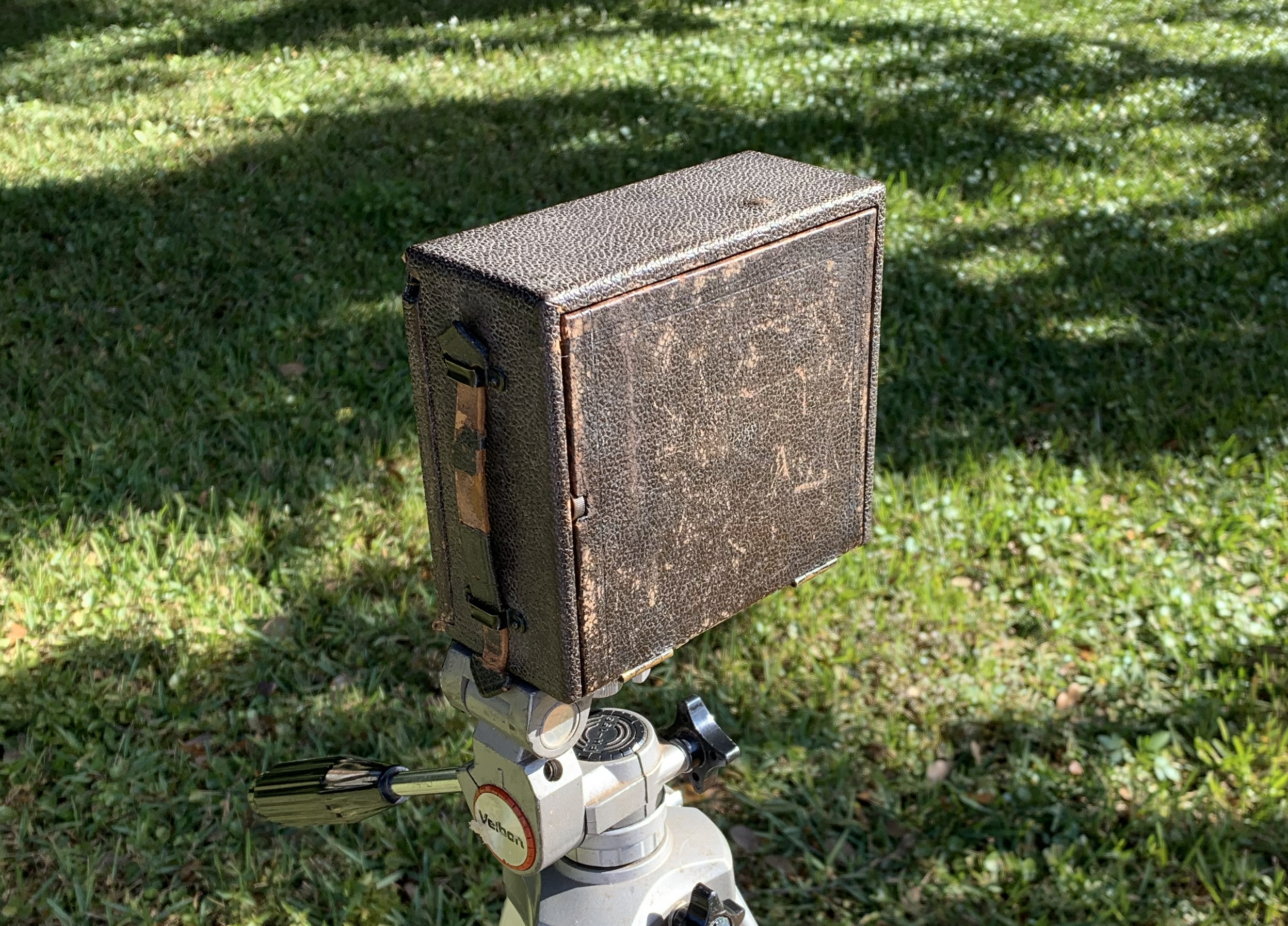 The camera is a folding Rochester Cycle Poco No. 2 model from 1896.