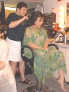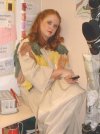 Quick change artist, Lizzy, walks through the receiving line after a show.